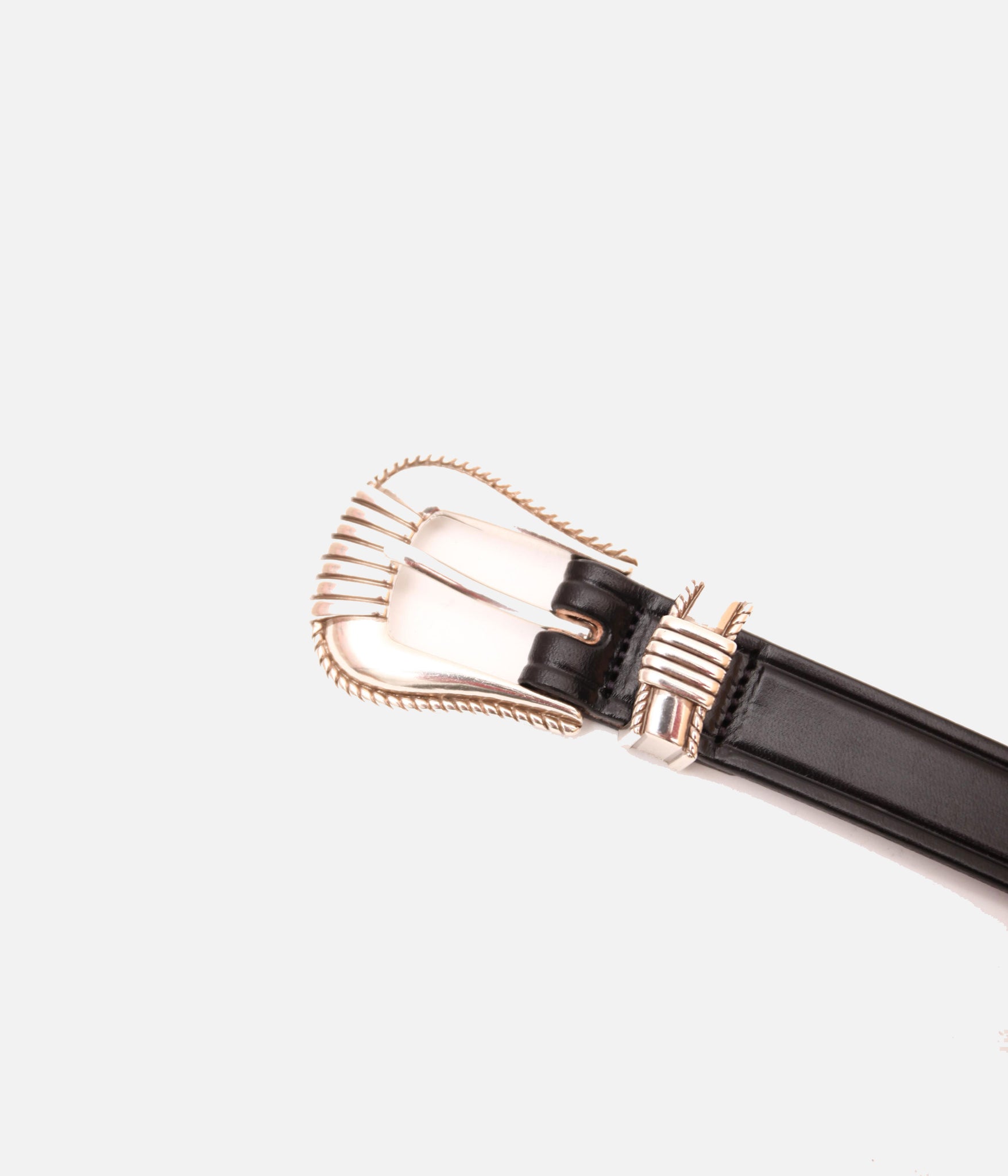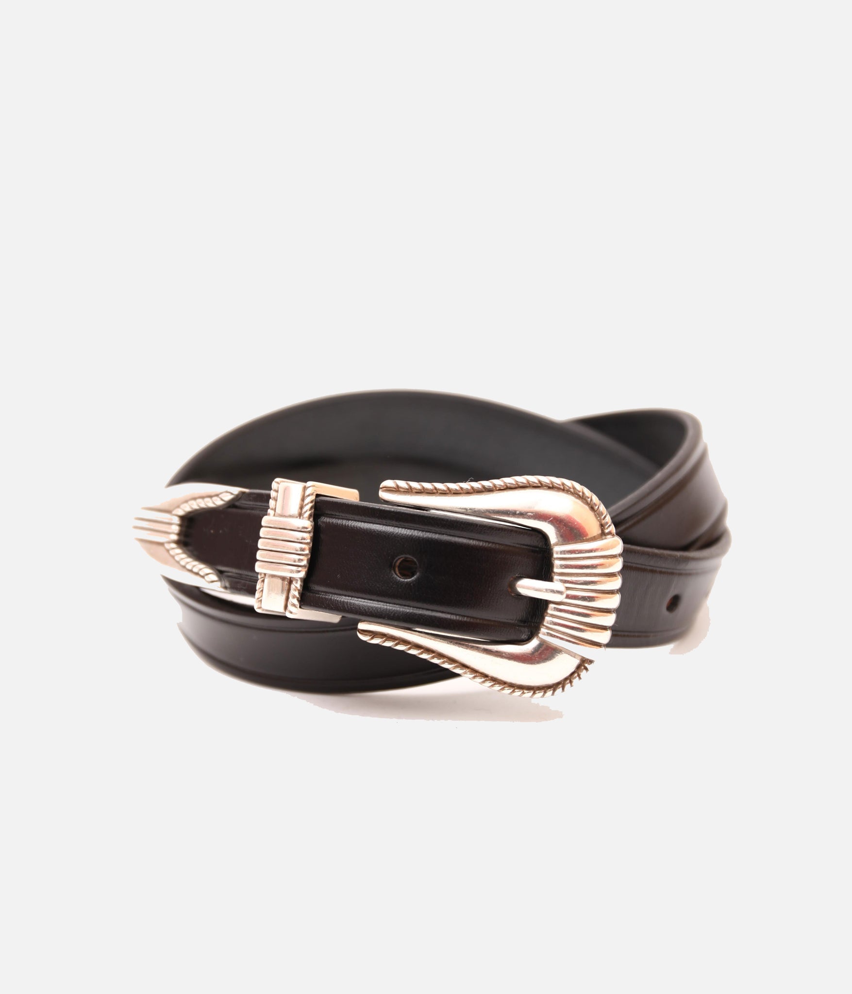 TORY LEATHER / 3-PIECE SILVER BUCKLE BELTS (BLACK)