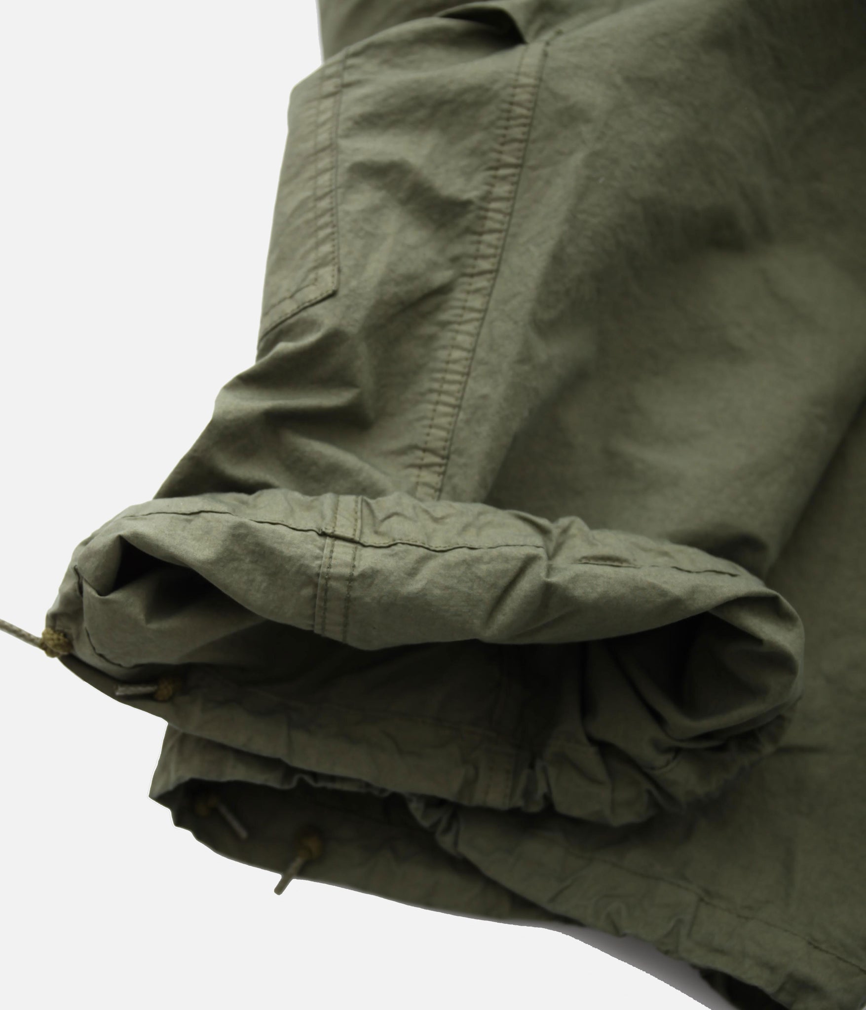 高密度コットンを使用した、ツイル生地。季節関係なく履ける生地感。