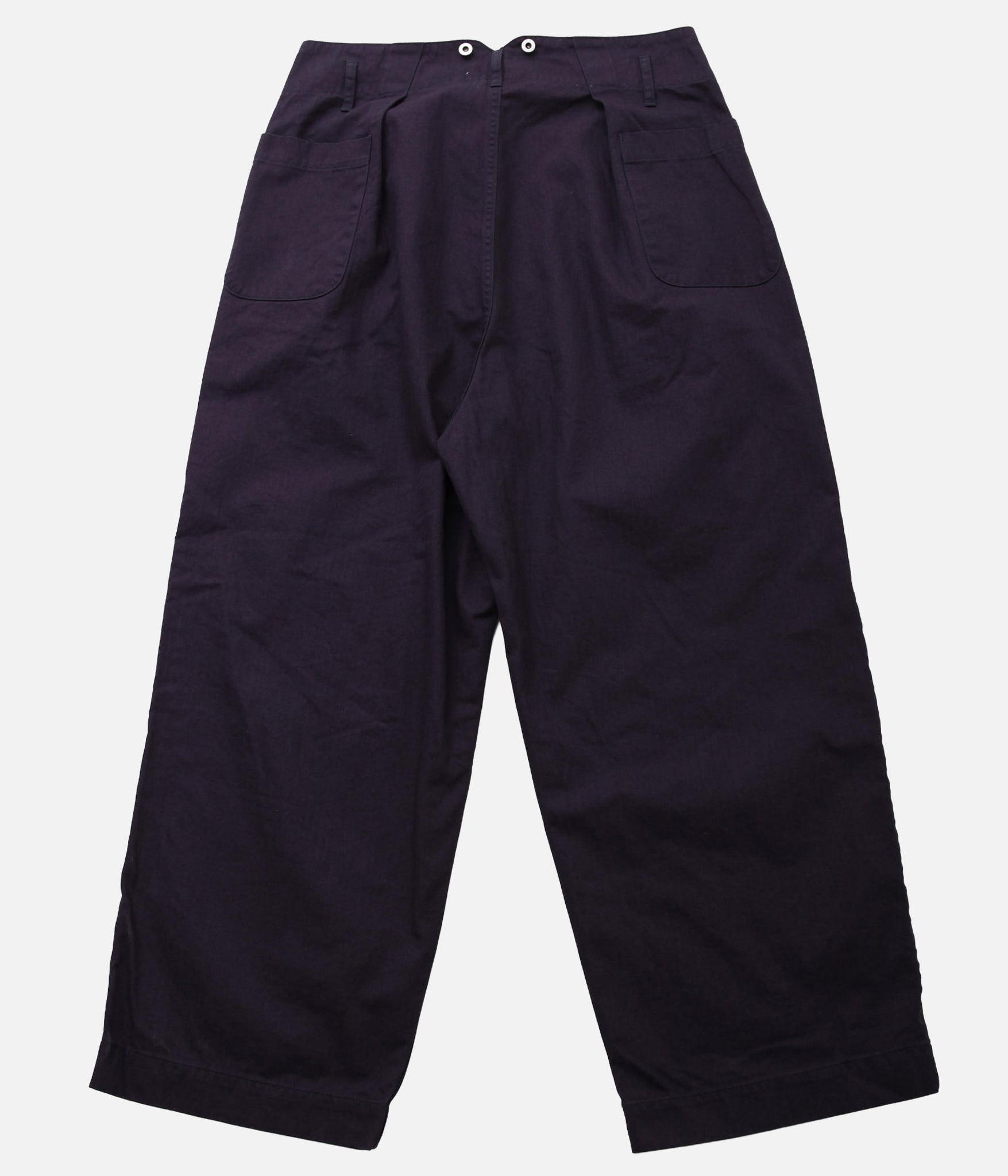 形はブランド定番のオリジナルワークパンツ。ハイウエストでワイド型。ウエストは大きめになっているので、ベルトで調整して履くのがおすすめ。