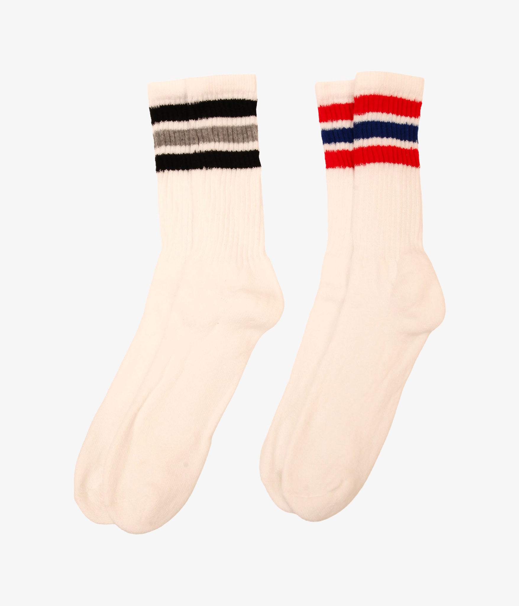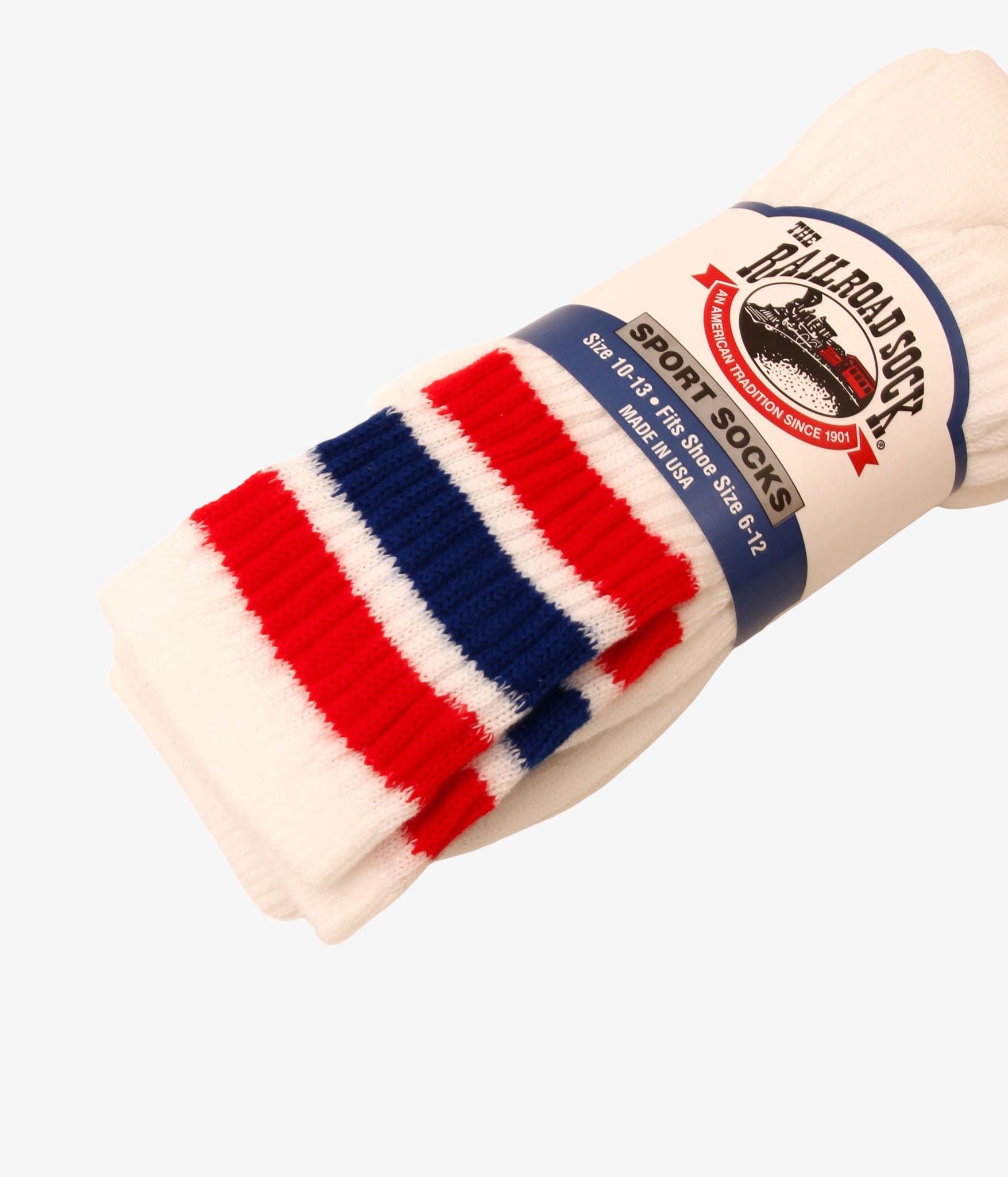 RAILROAD SOCK / Ameicana Striped Crew Socks 2Pair (BLACKxGREY, REDxROYAL)