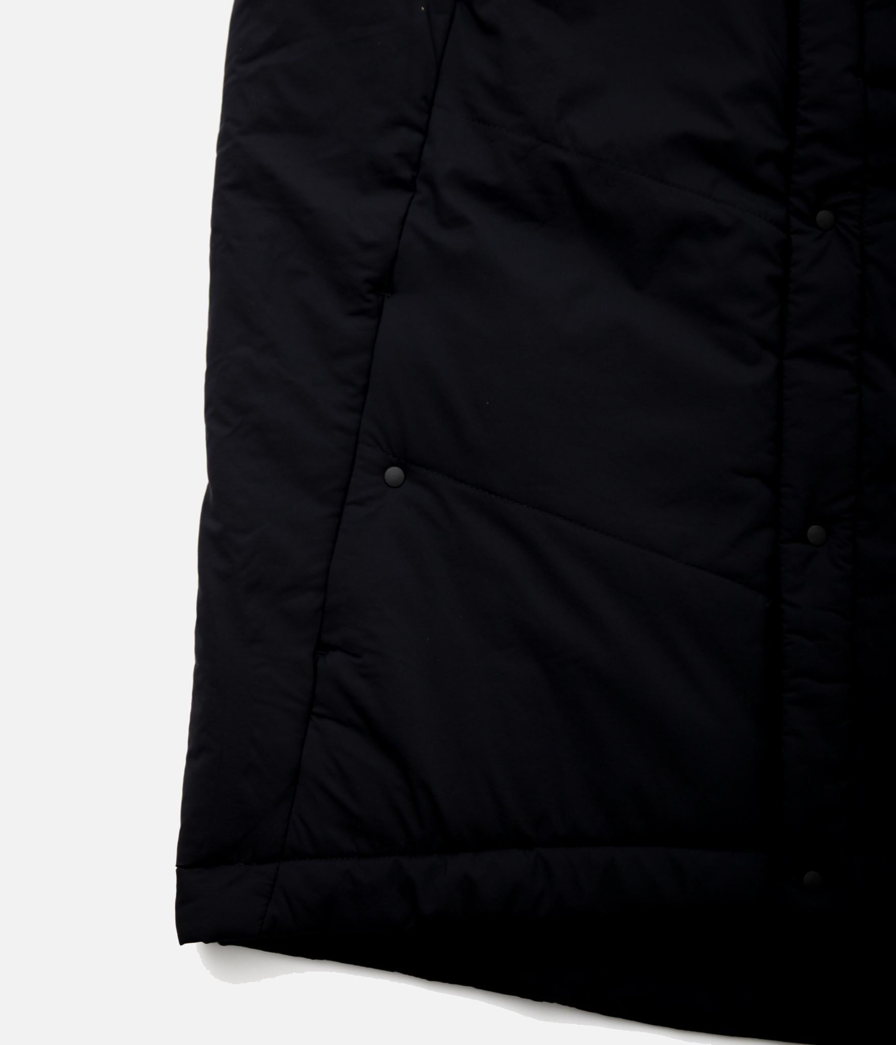 The fabric is made of lightweight, windproof, and water-repellent PERTEX microlight, a densely woven fabric that is both durable and packable. The padding is made of CLIMA SHIELD® APEX®, a synthetic cotton that retains its heat retention even when wet.