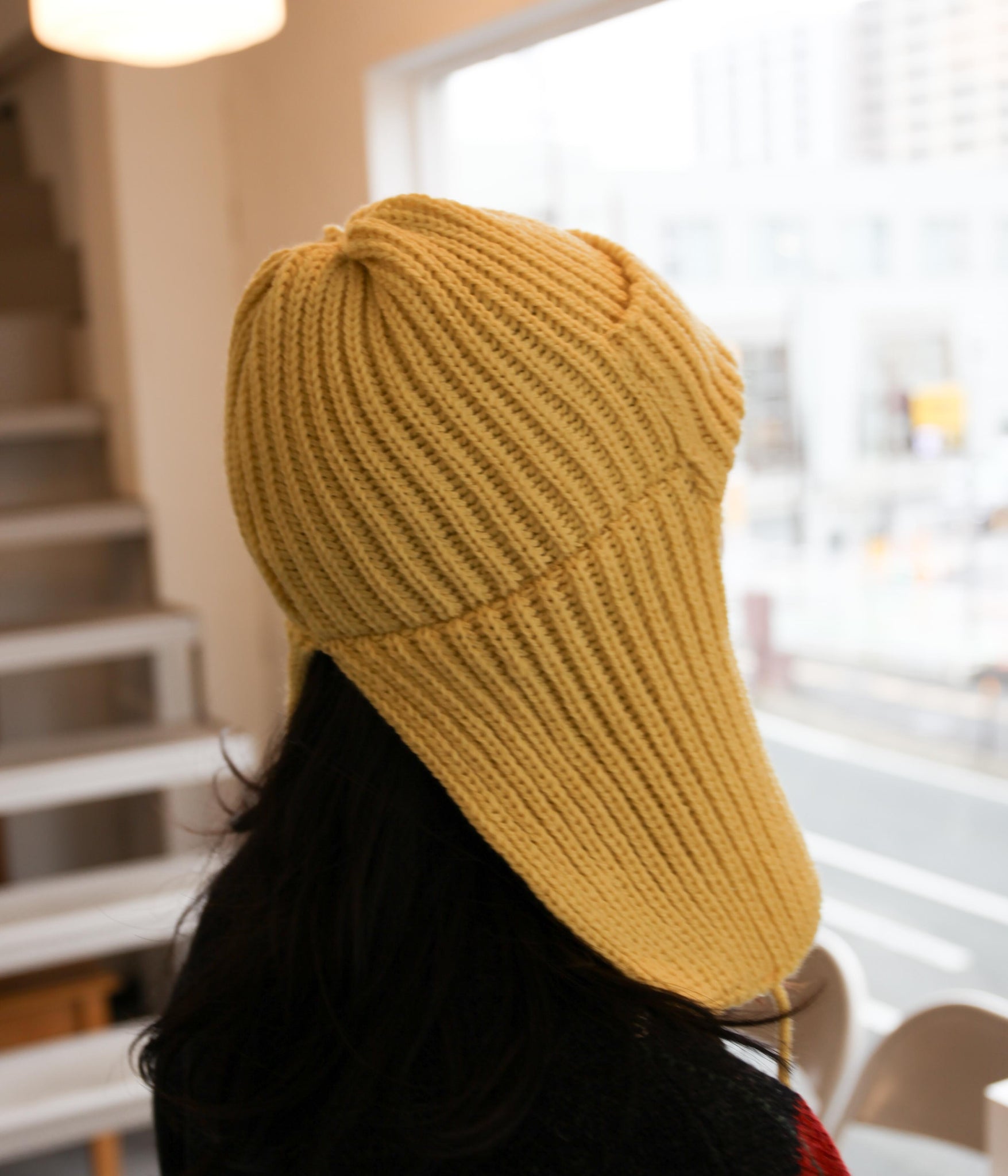 입구의 정면은 접혀의 더블 사양으로, 전체는 두께가 있는 리브 뜨개질로 완성하고 있습니다. 신축성이 뛰어나 머리 모양에 자연스럽게 맞는 편안한 착용감입니다.