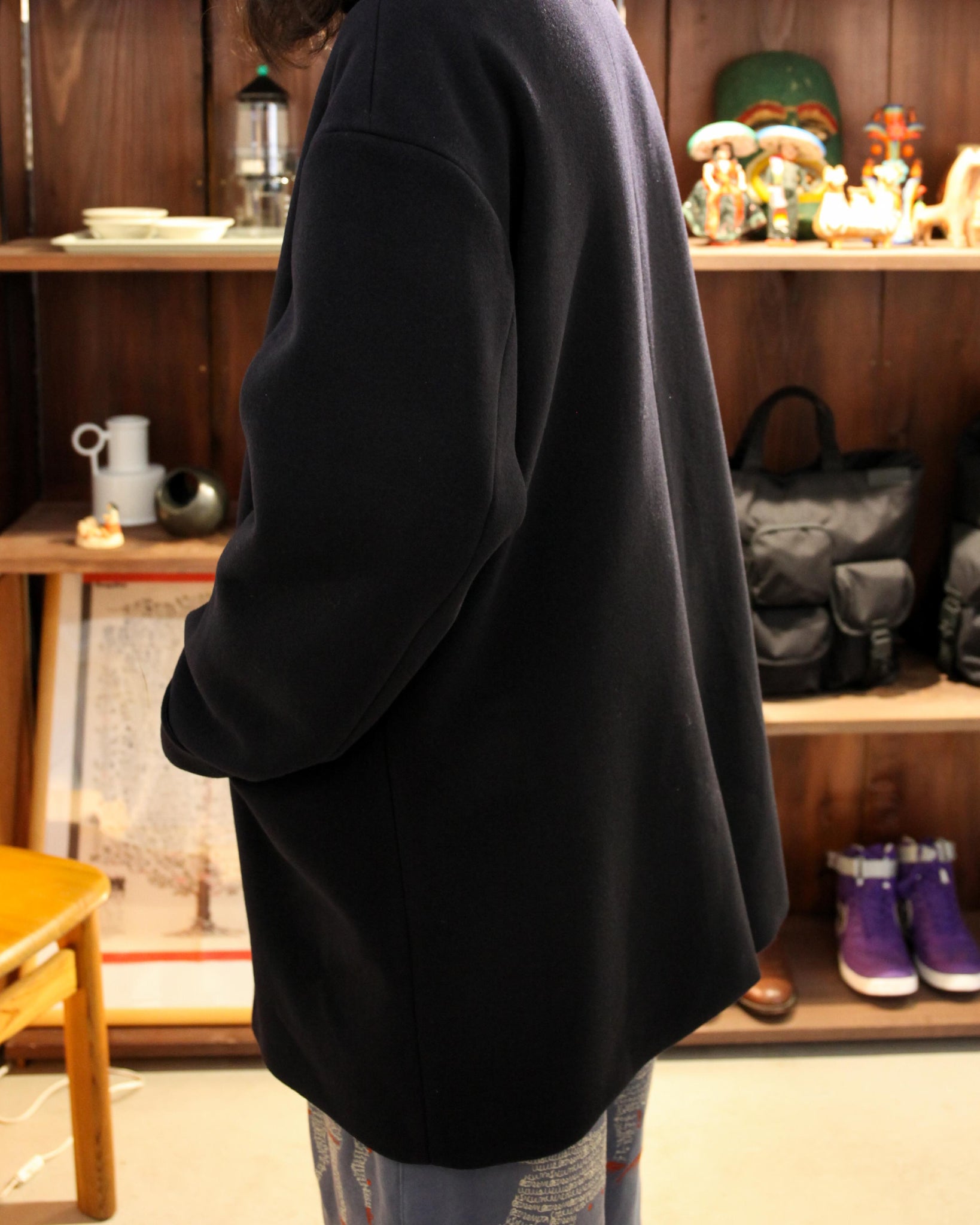 아이암 도크의 Tailor Box Coat(태즈마니아 울 더블 멜튼 체스터 코트)입니다.