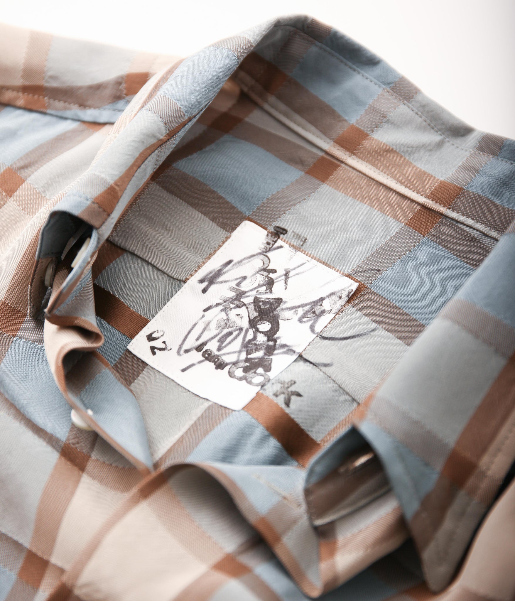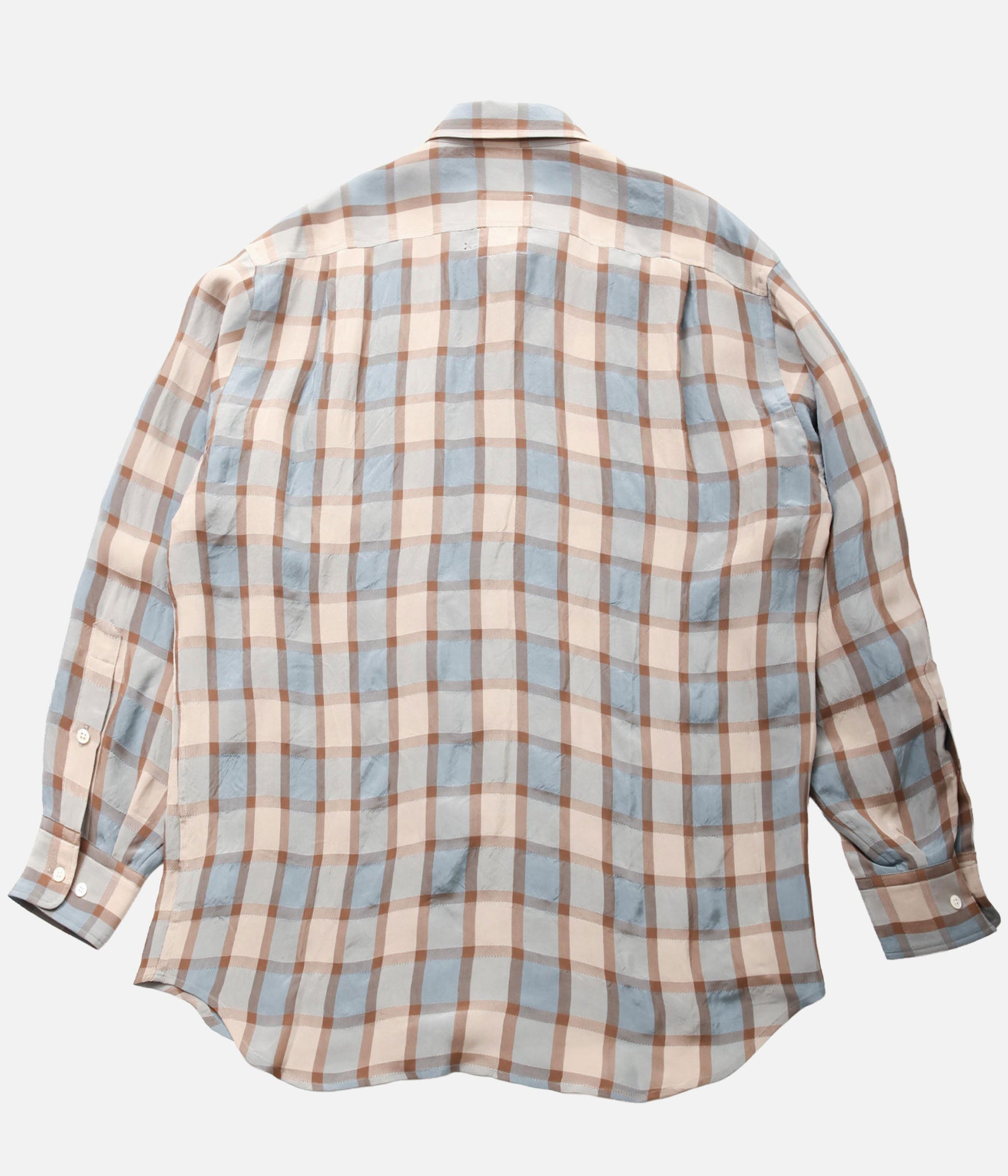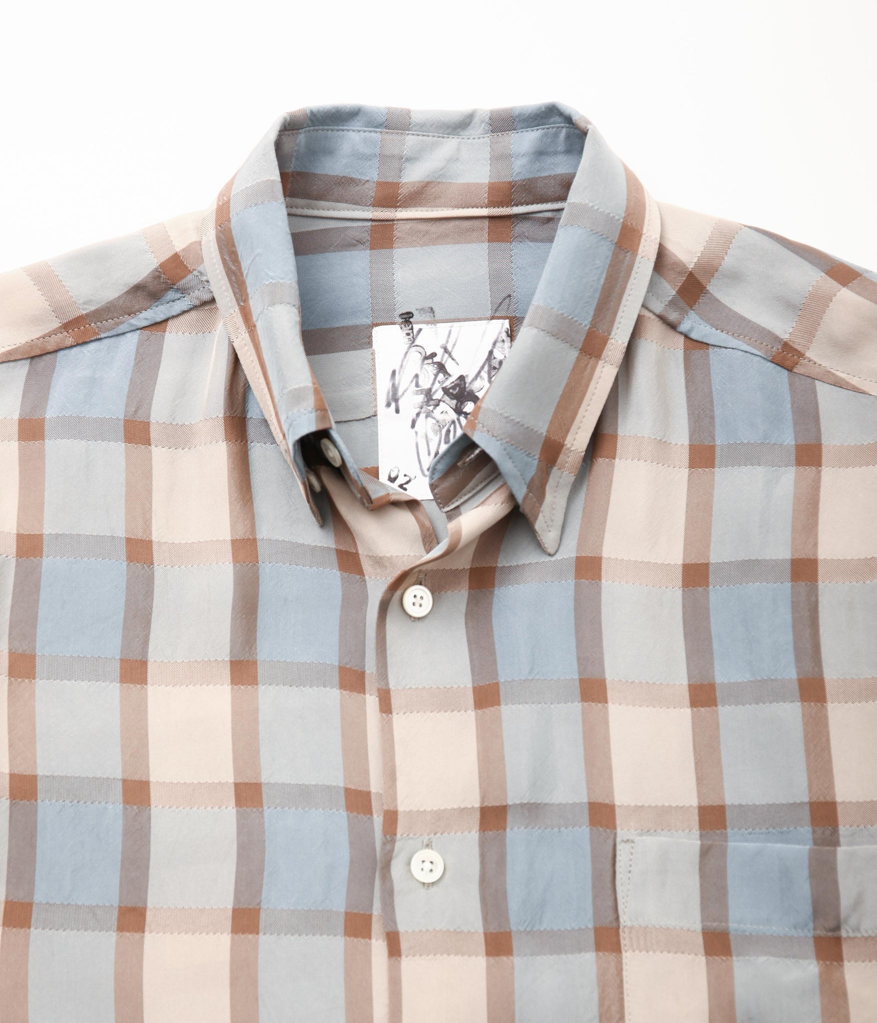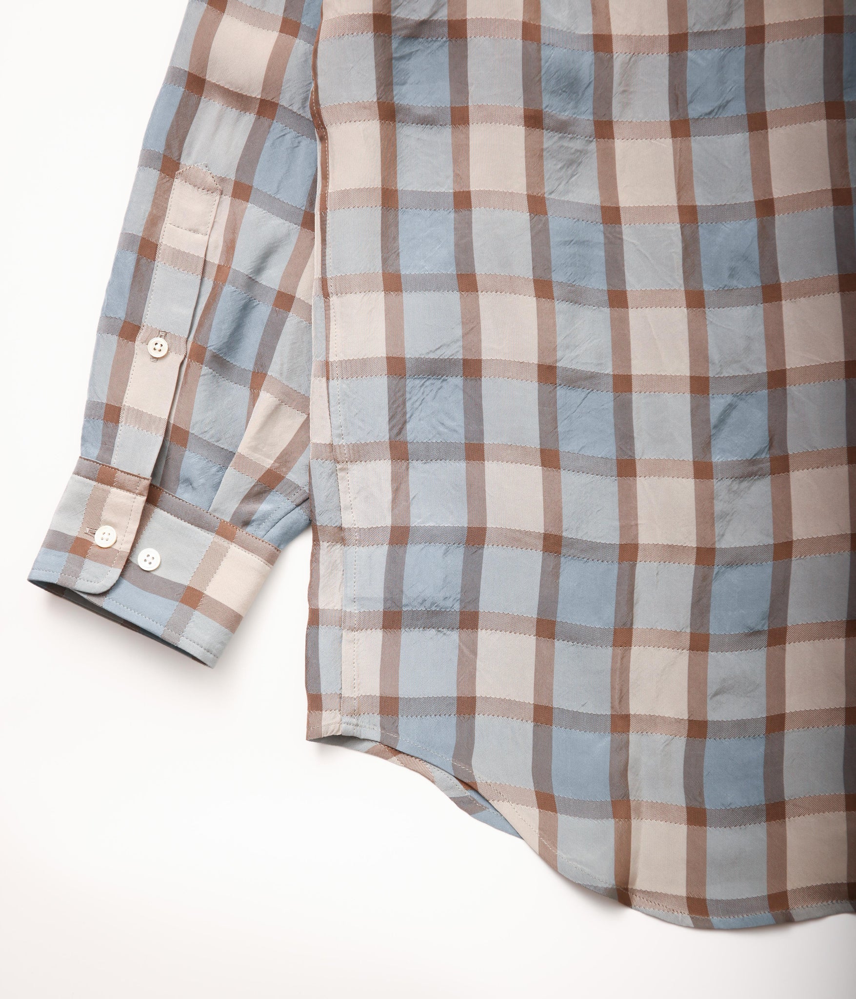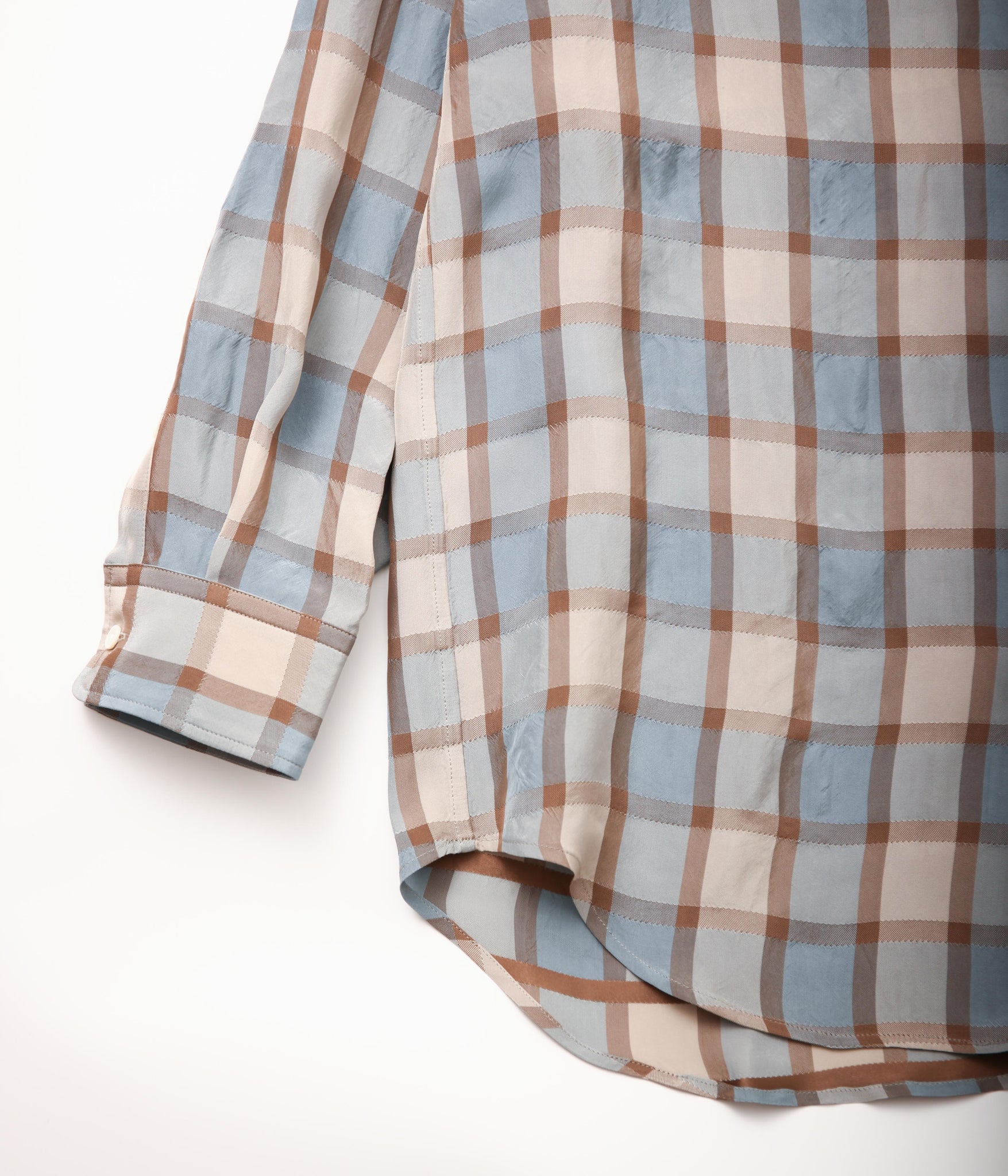 이탈리아의 텍스타일 메이커가 다루는 비스코스 소재의 체크지를 사용하고 있습니다. 떨어지는 느낌과 드레이프, 적당한 광택감이 특징의 원단입니다.