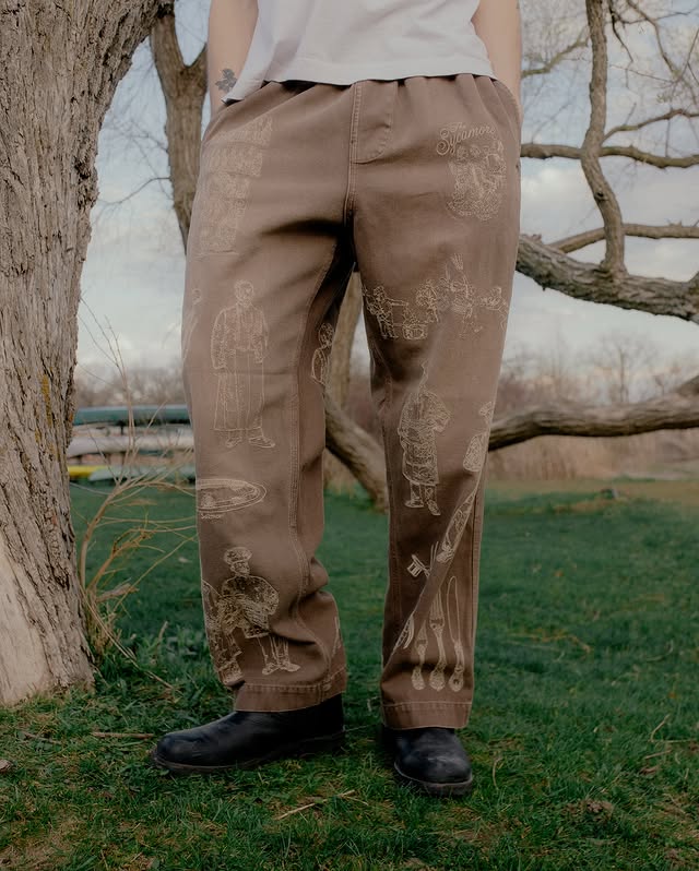 이번 시즌(25AW)은 수많은 클래식인 아메리칸 레스토랑으로부터 영감을 받아, 디자인했습니다. 우리는 "The Sycamore (더 시카모어)"라는 가상의 레스토랑을 창조. 웨이터, 셰프, 바텐더, 요리, 글라스류, 칼집 등을 자수로 표현해, 그리움을 느낄 수 있는 아메리칸 다이너의 공기감을 느낄 수 있도록 했습니다. 또한, 우리가 좋아하는 레스토랑 유니폼의 색상에서 영감을 얻은 스타일도 있습니다. 하나는 밝은 레드 쿼터 지퍼 스웨트 셔츠, 다른 하나는 깊은 숲 그린 라글란 슬리브 후디입니다.